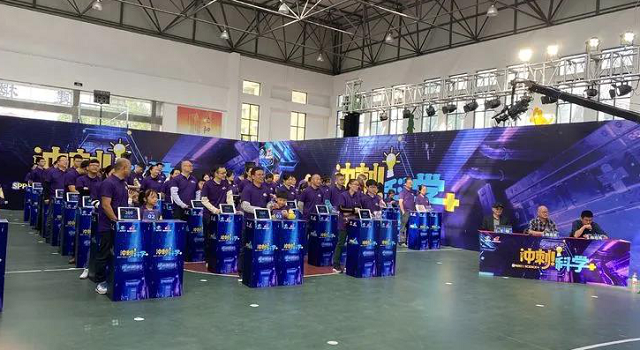 “沖刺科學(xué)+,共創(chuàng)新未來!”響亮的集體口號(hào)燃起競賽氣氛。比賽分為四個(gè)環(huán)節(jié),前兩輪“爭分奪秒”、“初露鋒芒”之后,即按照分?jǐn)?shù)排名淘汰一半家庭,角逐非常激烈。