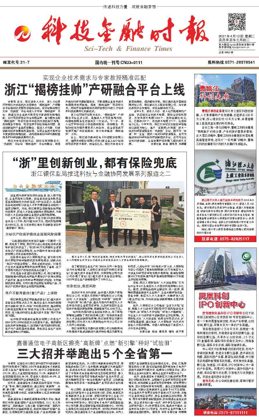 去年以來(lái),浙江轄內(nèi)(不含寧波)科技類保險(xiǎn)簽單近1.2萬(wàn)件,賠付超9200萬(wàn)元,提供風(fēng)險(xiǎn)保障近4000億元,有力支持浙江高水平創(chuàng)新型省份和“重要窗口”建設(shè)。