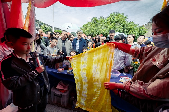 溫州市籀園小學(xué)學(xué)生葉明軒、吳雨軒的植物扎染實(shí)驗(yàn)室,采用紅花、梔子等天然材料進(jìn)行布料的染色,制作的彩色哈達(dá)讓大家非常感興趣。面對(duì)博導(dǎo)們的提問(wèn),他們對(duì)答如流。