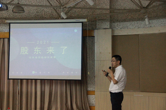 華聯(lián)期貨溫州營業(yè)部總經(jīng)理何學(xué)安用幽默風(fēng)趣的話語與多年滄桑的經(jīng)歷分享了關(guān)于金融知識的諸多干貨,告訴同學(xué)們要時刻充滿信心,努力學(xué)習(xí),并詳細(xì)解讀了本次《股東來了》賽程規(guī)則,呼吁大家積極參賽,通過競賽的形式,更為全面而系統(tǒng)地掌握投資者權(quán)益知識,為日后的投資生涯做好“全面知權(quán)、積極行權(quán)、依法維權(quán)”的積累。