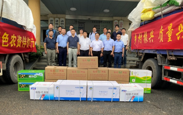 6月18日,由各單位籌集的科技救災(zāi)團(tuán)隊(duì)和首批捐贈物資抵達(dá)諸暨市馬劍鎮(zhèn),啟動助力諸暨災(zāi)后農(nóng)業(yè)生產(chǎn)恢復(fù)活動,浙江省農(nóng)業(yè)科學(xué)院副院長戚行江、人事部部長戴杰、科研與合作部副部長徐俊鋒,浙江省供銷社業(yè)務(wù)處處長徐旭、浙農(nóng)股份陳志浩、諸暨市副市長樓闖、諸暨市科技局局長蔣宏偉等有關(guān)領(lǐng)導(dǎo)及葡萄、水稻、蔬菜、質(zhì)量安全等學(xué)科專家、農(nóng)資企業(yè)代表、受災(zāi)鄉(xiāng)鎮(zhèn)代表等40余人參加。
