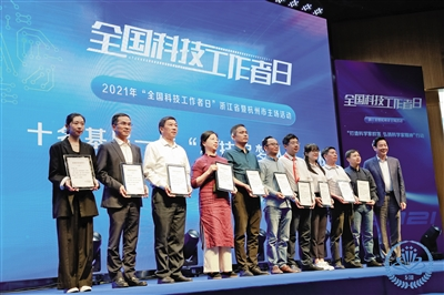 浙江省科協(xié)主席姚克為10位基層一線“科技追夢(mèng)人”頒發(fā)紀(jì)念獎(jiǎng)牌