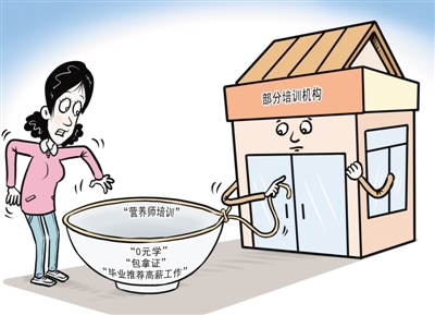相關(guān)從業(yè)者告訴記者,許多網(wǎng)絡(luò)機(jī)構(gòu)宣傳時(shí),刻意塑造“職業(yè)神話”,把“考證”和“高薪”直接掛鉤。但實(shí)際上,單靠短期培訓(xùn)的公共營(yíng)養(yǎng)師,并不能真正勝任現(xiàn)實(shí)中復(fù)雜的工作。