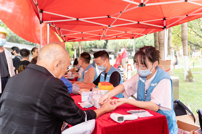 活動現(xiàn)場,團(tuán)隊(duì)成員們通過科普宣傳阿爾茨海默病科學(xué)知識,讓更多民眾關(guān)注阿爾茨海默病,做到早預(yù)防、早篩查、早就診。還通過手指操,面具制作等益智游戲的互動,增強(qiáng)中老年人群的社區(qū)社交能力。溫州醫(yī)科大學(xué)附屬第一醫(yī)院、溫州醫(yī)科大學(xué)附屬第二醫(yī)院醫(yī)生在現(xiàn)場為老人進(jìn)行義診、免費(fèi)健康咨詢等服務(wù)。此外,專門針對45歲及以上中老年人進(jìn)行認(rèn)知評估,并計(jì)劃對鹿城區(qū)所有百歲老人進(jìn)行免費(fèi)的體檢服務(wù)。