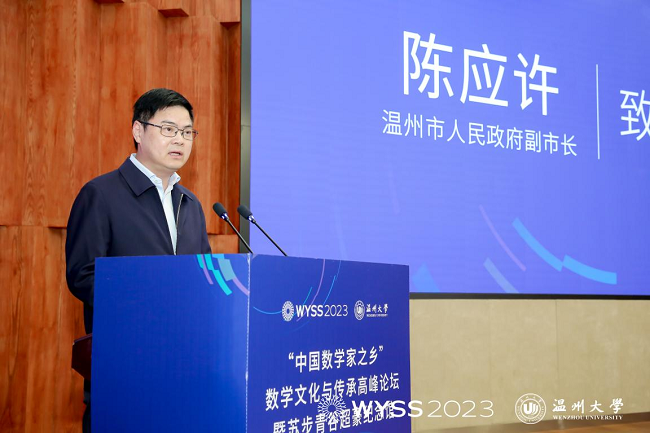溫州市人民政府副市長陳應(yīng)許表示,溫州素有“東南小鄒魯”之稱,也是中國數(shù)學(xué)家的搖籃,被譽(yù)為“數(shù)學(xué)家之鄉(xiāng)”。新時(shí)代,溫州擦亮“數(shù)學(xué)家之鄉(xiāng)”金字招牌是綿綿用力,久久為功,例如,打造了世界青年科學(xué)家峰會(huì)、中國數(shù)學(xué)教育研討會(huì)、溫籍?dāng)?shù)學(xué)家研究中心、溫籍?dāng)?shù)學(xué)家長廊等多種平臺(tái),出臺(tái)了《溫州數(shù)學(xué)家家園建設(shè)方案》,充分發(fā)揮溫籍?dāng)?shù)學(xué)家資源豐富的獨(dú)特優(yōu)勢,加速引育一批國內(nèi)外數(shù)學(xué)家等等。他在致辭中提出三點(diǎn)建議意見:一是匯聚最強(qiáng)大腦,助力溫州加強(qiáng)數(shù)學(xué)基礎(chǔ)研究;二是匯聚最強(qiáng)資源,助力溫州加強(qiáng)數(shù)學(xué)人才的培養(yǎng);三是匯聚最優(yōu)人才,助力溫州建設(shè)人才創(chuàng)新高地,希望得到院士、專家的幫助和支持,共同擦亮溫州“數(shù)學(xué)家之鄉(xiāng)”城市金名片。