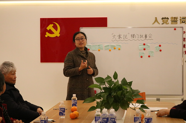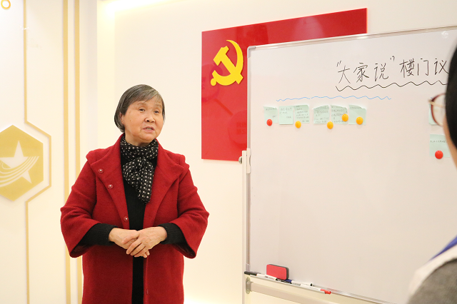 活動中,高級社會工作師、大北社區(qū)黨支部書記孫志芳首先教大家如何用開放空間的模式開設議題,并引出本次議題主要討論優(yōu)秀樓道公共空間美化補助資金使用項目。大家圍繞主題紛紛出點子,現(xiàn)場討論熱烈。