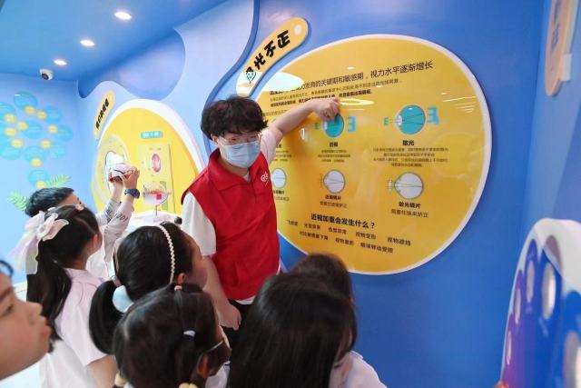 據(jù)介紹,眼健康科普館分為五大區(qū)域,包括大廳接待區(qū)、愛眼講演區(qū)、科普教育區(qū)、互動體驗區(qū)、低視力康復區(qū),體驗內容分為“小小驗光師”和“小小眼科醫(yī)生”兩類眼健康研學活動,針對不同年齡段兒童青少年提供不同的體驗項目。