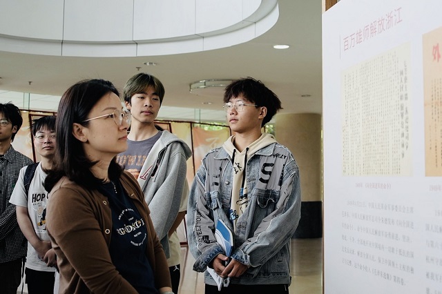 “小小紅船承載千鈞,播下了中國(guó)革命的火種,開啟了中國(guó)共產(chǎn)黨的跨世紀(jì)航程……”“中國(guó)共產(chǎn)黨浙南紅軍第十三軍第三團(tuán)有各式槍支九百多支,土炮多門,手提機(jī)槍四挺,是紅十三軍三個(gè)團(tuán)中武器最精良的一個(gè)團(tuán)……”跟隨中國(guó)計(jì)量大學(xué)“90、00”理論宣講團(tuán)的講解,一件件革命文物背后的歷史故事,躍然浮現(xiàn)在現(xiàn)場(chǎng)師生的眼前。5月8日,“紅船從‘浙’里起航——‘革命文物進(jìn)高校’大型巡展”走進(jìn)中國(guó)計(jì)量大學(xué),學(xué)!90、00”理論宣講團(tuán)生動(dòng)講述革命文物背后的故事,讓在場(chǎng)的100余名師生“沉浸式”感悟崢嶸歲月,感受革命精神和紅色文化的魅力,將生動(dòng)的思政課搬到展覽現(xiàn)場(chǎng)。