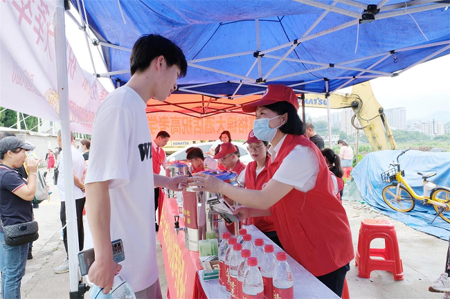 十年磨一劍,今朝試霜刃。今年溫州永嘉參加夏季高考統(tǒng)一考試共6475名考生,全縣設(shè)6個考點。6月7日,為助力考生乘風(fēng)破浪、金榜題名,溫州電力紅十三愛心社在永嘉縣職業(yè)中學(xué)設(shè)置“愛心助考服務(wù)點”,護(hù)航高考學(xué)子圓夢路。