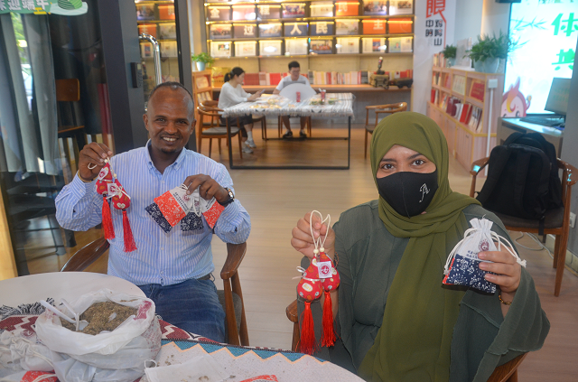 活動(dòng)中,來(lái)自哥倫比亞的居民喬白對(duì)中醫(yī)中藥的獨(dú)特魅力嘖嘖稱(chēng)奇,“香囊真好看,味道也好聞!”來(lái)自也門(mén)的阿瑪學(xué)起八段錦一招一式非常認(rèn)真,“真的太有意思了,這個(gè)像功夫!彼麄兗娂姳硎荆@次中醫(yī)藥文化體驗(yàn)之旅讓他們與中醫(yī)中藥走得更近了,同時(shí)點(diǎn)贊義烏市中醫(yī)醫(yī)院既有傳承又有創(chuàng)新,為他們打開(kāi)了一扇健康保健的新大門(mén)。
