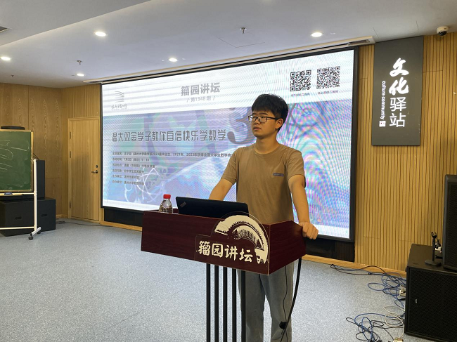 “我們經(jīng)常會看到這類現(xiàn)象,一些數(shù)學(xué)還不錯的學(xué)生進(jìn)了中學(xué)后,逐漸喪失了對數(shù)學(xué)的興趣,甚至厭惡數(shù)學(xué)。究其原因,很大一部分在于隨著考試難度不斷加大,導(dǎo)致不少學(xué)生因考試反復(fù)失利而產(chǎn)生挫敗感。對此,我將與同學(xué)們一起探討如何保持對數(shù)學(xué)的興趣以及克服對數(shù)學(xué)的恐懼……”7月2日,在溫州市圖書館舉行的第1348期籀園講壇上,來自溫大數(shù)理學(xué)院的莊子游同學(xué),面向中學(xué)生及其家長悉心分享自己的學(xué)習(xí)體會,吸引線上線下近萬人次參與觀看,產(chǎn)生了積極的社會反響。