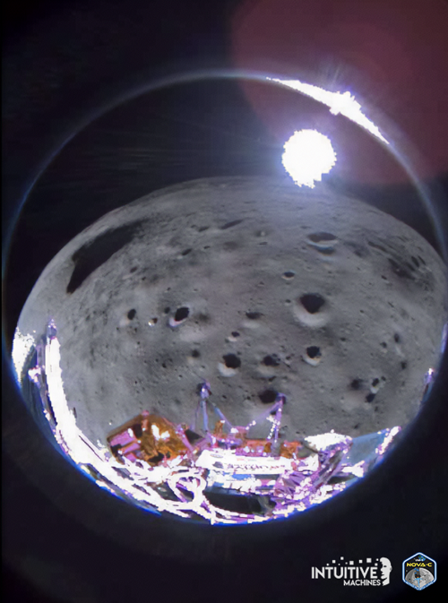 “奧德修斯”于美國東部時間2月22日著陸月球南極附近,實際著陸點距離預定的Malapert A著陸點有1.5公里。這是美國自1972年阿波羅17號登月以來第一個在月球表面軟著陸的航天器,也是私營企業(yè)首次登陸月表。起初,直覺機器公司稱“奧德修斯”是直立的并開始發(fā)送數(shù)據(jù),但后來透露著陸器在著陸過程中的速度比計劃的要快,最終側翻,躺在月球上。
