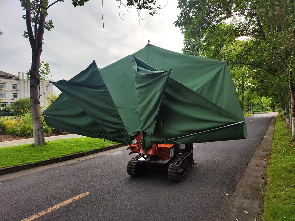 “林果采摘存在人工采摘?jiǎng)趧?dòng)強(qiáng)度大、效率低,機(jī)械化采摘技術(shù)滯后,采摘容易損傷果實(shí)與果樹,果實(shí)易腐爛等問題。與此同時(shí),丘林山地地貌的果林通常還存在著機(jī)器運(yùn)輸難,果類多樣難以統(tǒng)一采摘方式等難題。”錢孟波說(shuō),為解決這些難題,他帶領(lǐng)學(xué)生團(tuán)隊(duì)從2021年開始研究攻關(guān),發(fā)現(xiàn)折展式的采摘結(jié)構(gòu)可以適應(yīng)丘林山地的林間作業(yè)環(huán)境,在此基礎(chǔ)上指導(dǎo)學(xué)生們研發(fā)了折展式采收一體機(jī)。
