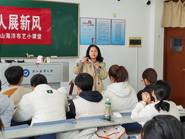 為了讓廣大師生充分領略舟山海洋布藝的獨特魅力,學院分別在“科技文化月”、“三八”國際婦女節(jié)等期間邀請舟山海洋布藝傳承人朱水紅,開展舟山海洋布藝制作小課堂。穿針、引線、打結、縫制,學生興致高昂!靶≌n堂有意思又實用,沒想到我也可以制作出手工藝品,太有成就感了!”一位男生在參與活動中感嘆道。據悉,海洋布藝制作已融入學院的勞動實踐課程。