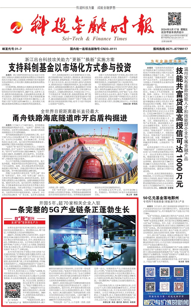 編者按》》》眼下,浙江正全力以赴“在以科技創(chuàng)新塑造發(fā)展新優(yōu)勢上走在前列”,科技金融時報全媒體推出“向‘新’躍升——發(fā)現(xiàn)‘浙’里新質生產力”系列報道,深度挖掘一批在發(fā)展新質生產力上敢打頭陣、勇當先鋒、爭當尖兵的典型。