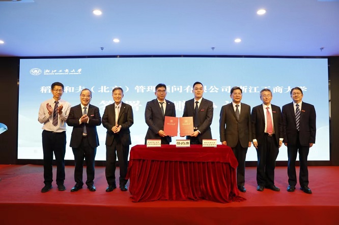 5月20日,浙江工商大學(xué)和稻盛和夫(北京)管理顧問(wèn)有限公司在該校教工路校區(qū)舉行簽約暨捐贈(zèng)儀式。稻盛和夫(北京)管理顧問(wèn)有限公司組織籌措捐贈(zèng)1億元人民幣,與浙江工商大學(xué)共建稻盛商學(xué)院,促進(jìn)產(chǎn)學(xué)研深度融合;后續(xù)還將捐贈(zèng)建設(shè)稻盛商學(xué)院大樓,為高水平大學(xué)建設(shè)和浙江省乃至全國(guó)經(jīng)濟(jì)社會(huì)發(fā)展貢獻(xiàn)力量。