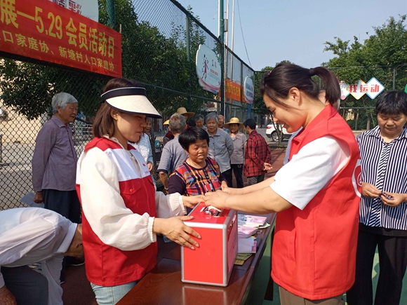 活動現(xiàn)場,人口家庭協(xié)會會員及紅十字會志愿者通過懸掛橫幅、擺放展版、發(fā)放《新時代婚育文化倡議書》等形式,向村民宣傳新時代婚育新風、權益維護、政策解讀、家庭健康等知識,鼓勵村民進行孕前優(yōu)生健康檢查、適齡婦女兩癌篩查等。隨后,志愿者對相關內容進行有獎問答,轄區(qū)村民踴躍參與。志愿者還為困難家庭開展了“愛心一元捐”活動,大家紛紛獻出自己的一份愛心,為困難家庭伸出援助之手。