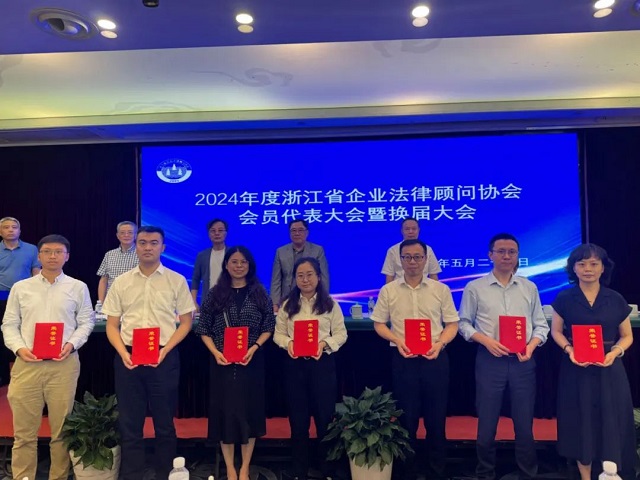 5月24日下午,2024年度浙江省企業(yè)法律顧問協(xié)會會員代表大會暨換屆大會在杭州舉行,選舉產(chǎn)生浙江省企業(yè)律師顧問協(xié)會新一屆理事會。
