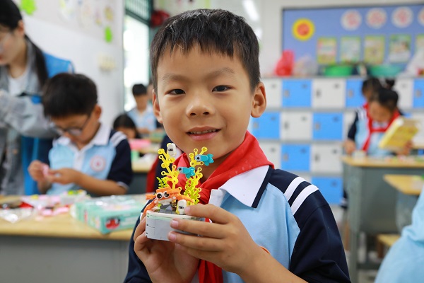 小小的積木課堂,拼出大大的奇妙世界。在科普講師蔣宇凡的指導(dǎo)下,孩子們默契合作,一朵朵惟妙惟肖的積木花朵在孩子們的指尖綻放。積木搭建讓學(xué)生的想象力飛了起來,讓好奇心滿了起來,讓雙手動(dòng)了起來。
