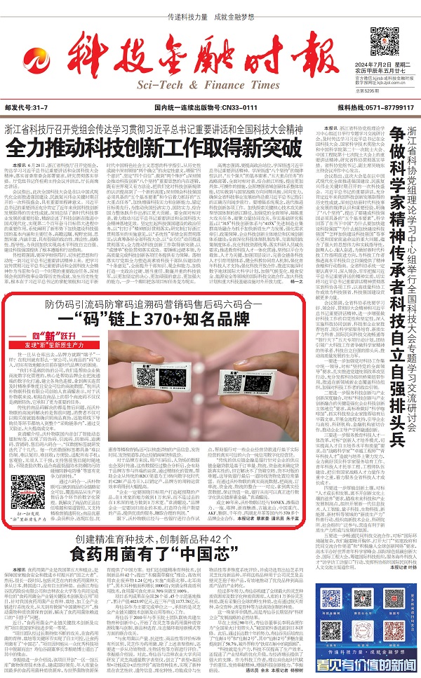 編者按》》》眼下,浙江正全力以赴“在以科技創(chuàng)新塑造發(fā)展新優(yōu)勢上走在前列”,科技金融時報全媒體推出“向‘新’躍升——發(fā)現(xiàn)‘浙’里新質生產力”系列報道,深度挖掘一批在發(fā)展新質生產力上敢打頭陣、勇當先鋒、爭當尖兵的典型。