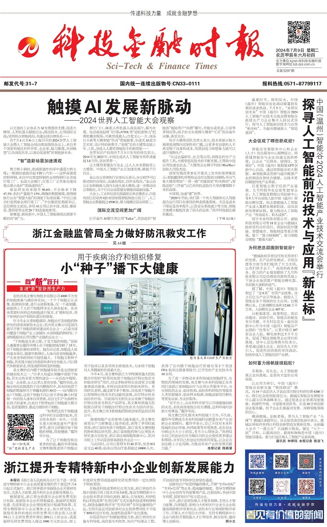 編者按》》》眼下,浙江正全力以赴“在以科技創(chuàng)新塑造發(fā)展新優(yōu)勢上走在前列”,科技金融時報全媒體推出“向‘新’躍升——發(fā)現(xiàn)‘浙’里新質(zhì)生產(chǎn)力”系列報道,深度挖掘一批在發(fā)展新質(zhì)生產(chǎn)力上敢打頭陣、勇當先鋒、爭當尖兵的典型。
