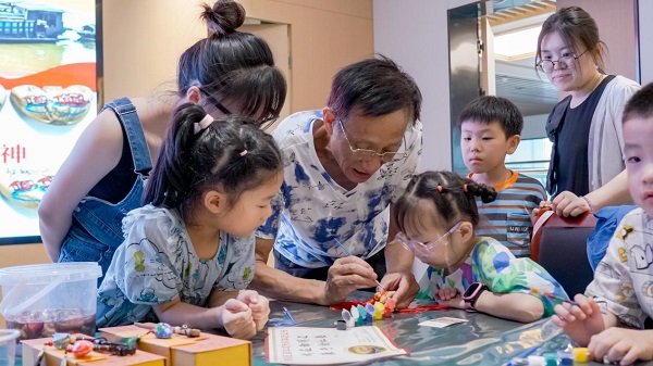 南湖菱不僅可以端上餐桌,還可以被擺上畫(huà)案。在南湖菱畫(huà)非遺傳承人的教學(xué)和指導(dǎo)下,學(xué)生們與家長(zhǎng)通力合作,勾線(xiàn)填色,兔子、老虎、小鳥(niǎo)……借菱而生。