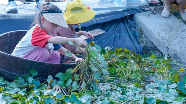 “咱們嘉興特產(chǎn)的南湖菱肉嫩汁多、甜脆清香,因外形無(wú)角又得名‘元寶菱’。目前,南湖菱主要種植在嘉興市秀洲區(qū)油車(chē)港鎮(zhèn),這里也被譽(yù)為‘中國(guó)菱鄉(xiāng)’……”嘉興市農(nóng)科院專(zhuān)業(yè)老師為學(xué)生們講述了“菱角的一生”,從育種育苗到端上餐桌,了解了南湖菱的獨(dú)特之處。