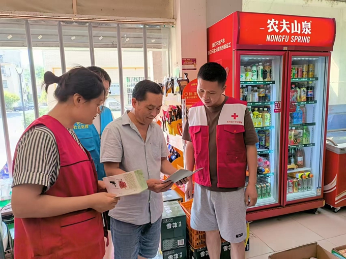 協(xié)管員用通俗易懂的語言向村民介紹食品安全小知識,引導(dǎo)村民科學(xué)合理、健康飲食。與此同時,協(xié)管員到轄區(qū)內(nèi)的餐飲店、副食店等經(jīng)營場所,通過發(fā)放宣傳折頁、宣傳手冊等方式普及食品安全、消防安全、垃圾分類等知識,要求嚴(yán)禁銷售“三無”過期食品,提醒商戶要加強經(jīng)營場所的衛(wèi)生清潔,做到每天消毒、垃圾及時分類清理,引導(dǎo)商戶把安全根植于心,一起守護(hù)“舌尖上的安全”。
