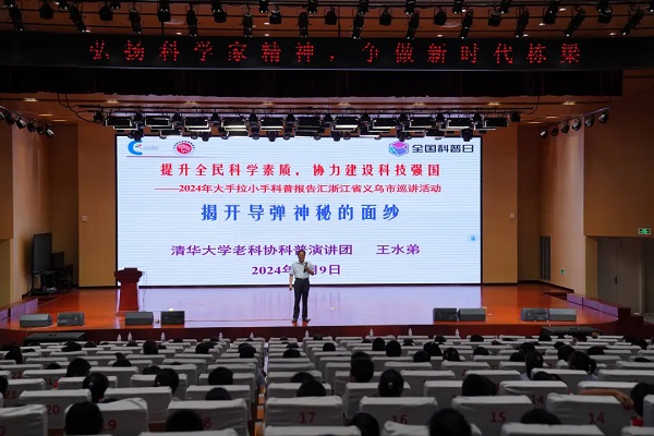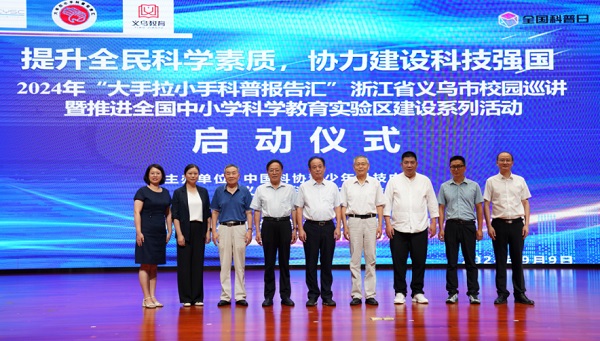 9月9日,由中國科協(xié)青少年科技中心、義烏市科協(xié)、義烏市教育局主辦的“提升全民科學(xué)素質(zhì),攜手建設(shè)科技強(qiáng)國——2024年大手拉小手科普?qǐng)?bào)告匯浙江省義烏市校園巡講活動(dòng)”暨義烏市推進(jìn)全國中小學(xué)科學(xué)教育試驗(yàn)區(qū)建設(shè)系列活動(dòng)在稠城一小正式啟動(dòng),來自清華大學(xué)老科協(xié)科普演講團(tuán)的5位老師也一起參加了啟動(dòng)儀式。