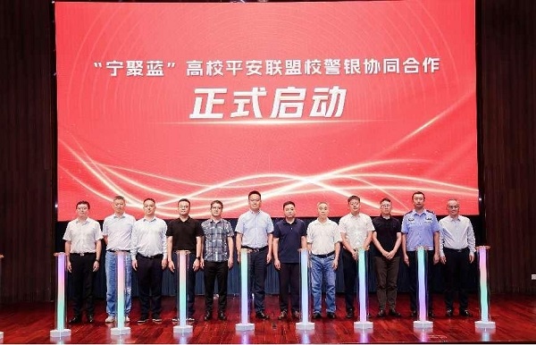 活動現(xiàn)場舉行了“寧聚藍”高校平安聯(lián)盟校警銀協(xié)同合作啟動儀式。今后將繼續(xù)守護平安校園,創(chuàng)造和諧安全的金融消費環(huán)境。