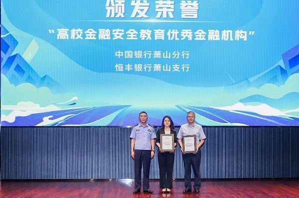 近年來,金融機構(gòu)和媒體單位積極配合公安開展反詐進高校宣傳活動,中國銀行蕭山分行和恒豐銀行蕭山支行獲得“高校金融安全教育優(yōu)秀金融機構(gòu)”榮譽,浙江廣電新媒體有限公司獲得“高校反詐宣傳優(yōu)秀單位”榮譽。
