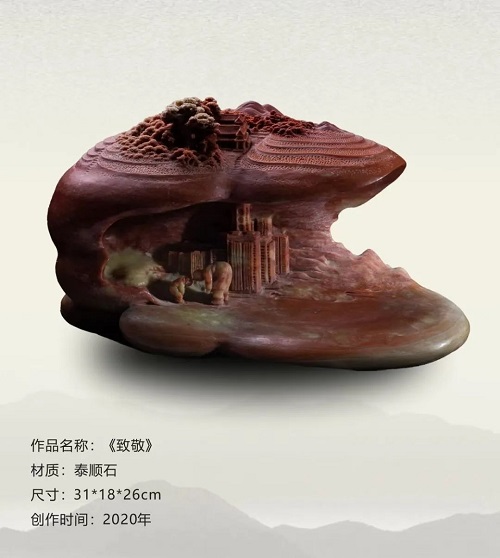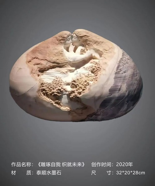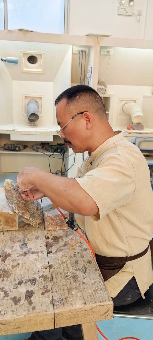 在潘成松眼中,石頭絕非普通的材質,而是承載著無限可能的藝術寶藏,是匠心獨運的結晶。潘成松說,“我喜愛石頭,它是超億年‘歲月見證者’。億萬年中,地殼運動、風雨打磨,石上蝕痕訴說地球變遷。我以雕刀,助石頭重綻光芒、回歸自然之美,這是我矢志不渝的追求!