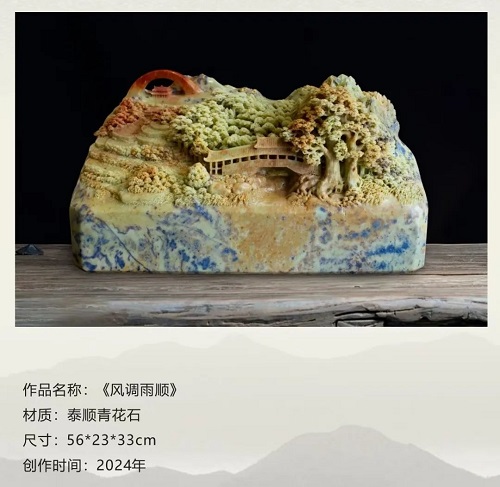 潘成松的作品以“因石施藝”“依色取巧”著稱,既扎根泰順耕讀文化,又融入現代審美。其代表作《生命的旋律》《北極稱雄》連續(xù)斬獲浙江省精品評比特等獎,《歸》《胖妞》等系列作品則以鄉(xiāng)土生活為靈感,獲省級金獎。