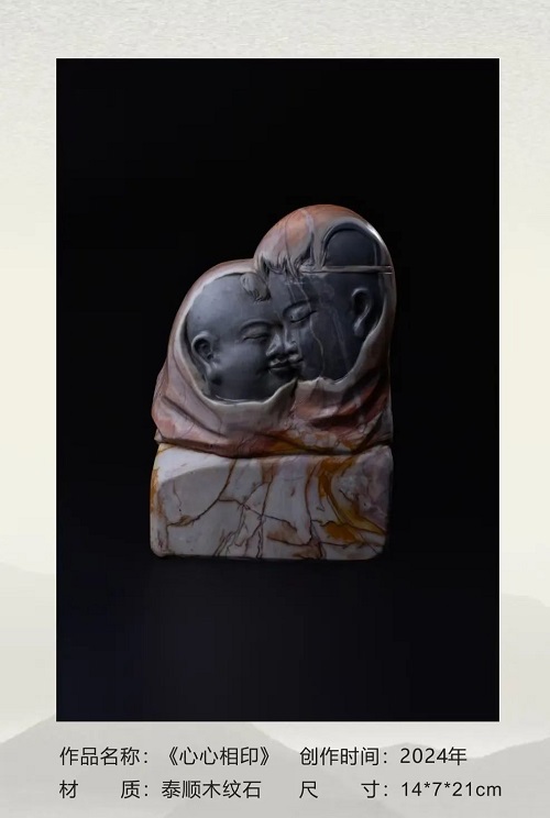 潘成松的石雕作品,向來以“因石施藝”“依色取巧”的精妙技法聞名遐邇。潘成松視石頭為“有靈魂的載體”,主張“雕與不雕”的理念:保留石材天然肌理,僅以局部雕刻點睛。