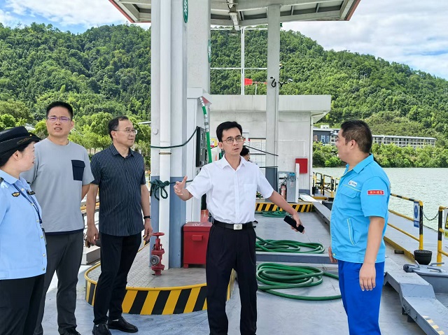 在現(xiàn)場(chǎng),大石坪站經(jīng)理劉倫斌向考察組介紹了加油站的運(yùn)營(yíng)情況,并帶領(lǐng)方繼明一行實(shí)地察看了加油站躉船式加油設(shè)施,了解“四閥五防”的安全管理模式。“這一模式通過(guò)多重閥門(mén)控制與五道防護(hù)機(jī)制,從源頭上嚴(yán)防油品泄漏,確保水陸環(huán)境安全與運(yùn)營(yíng)穩(wěn)定,可以有效破解了水上加油的安全監(jiān)管難題!眲惐蠼榻B。