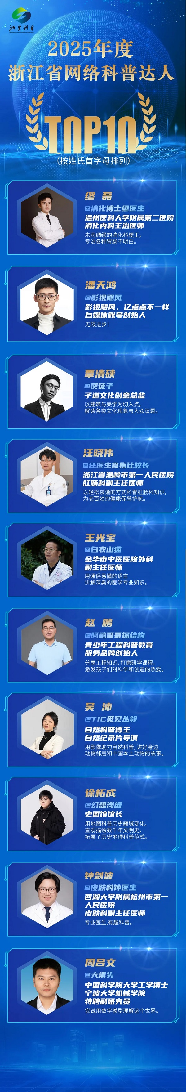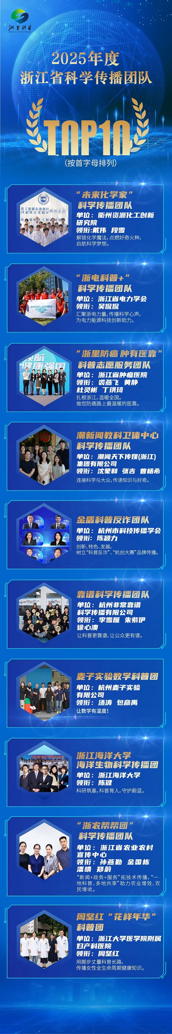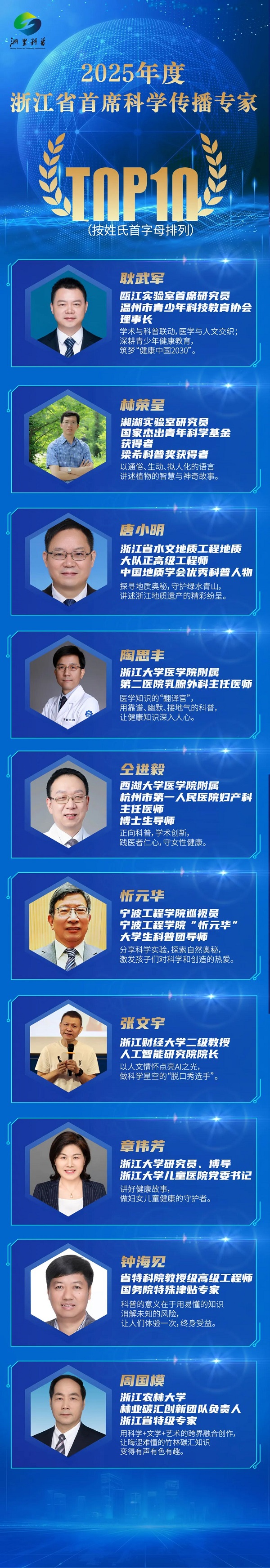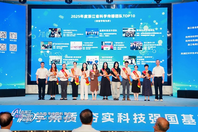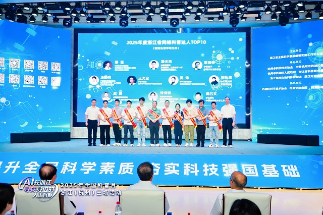 活動現(xiàn)場亮點紛呈,備受關注的2025年浙江省“十百千萬”科學傳播專家名單在現(xiàn)場正式揭曉——2025年度浙江省首席科學傳播專家TOP10、2025年度浙江省科學傳播團隊TOP10與2025年度浙江省網(wǎng)絡科普達人TOP10名單,逐一亮相。入選者包含破解技術密碼的首席專家、打造爆款科普產(chǎn)品的創(chuàng)意團隊、吸引千萬網(wǎng)友愛上科學的網(wǎng)絡科普達人……這些優(yōu)秀個體與團隊的涌現(xiàn),彰顯出浙江在科學傳播領域的強勁實力。