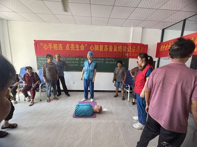 隨后進行的心肺復(fù)蘇實操培訓(xùn)環(huán)節(jié),科普志愿者借助模擬人演示了意識判斷、緊急呼救、胸外按壓及人工呼吸等關(guān)鍵步驟。通過“手把手”教學(xué),許多村民初步掌握了心肺復(fù)蘇的基本技能,提高了在突發(fā)情況下實施應(yīng)急救助的能力。