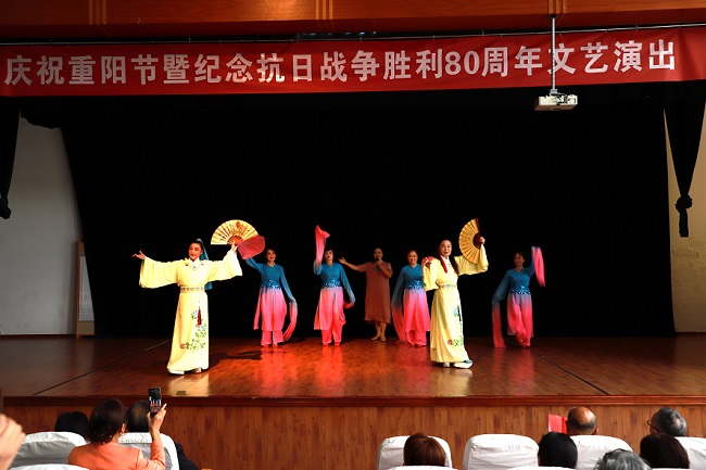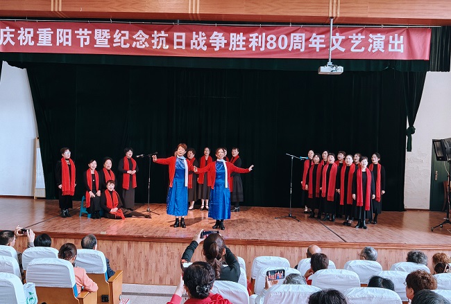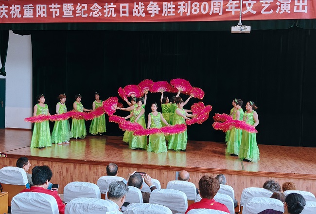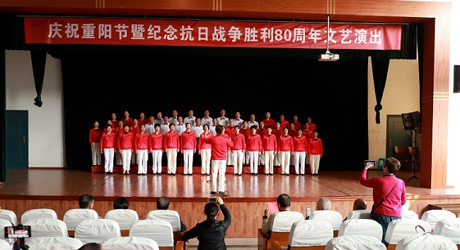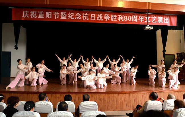演出以“敬老”與“抗戰(zhàn)”為核心主線,節(jié)目?jī)?nèi)容包括大合唱、舞蹈、戲曲、太極、腰鼓、旗袍秀等,不少節(jié)目融入了紅色經(jīng)典元素與敬老溫情,兼顧思想性與觀賞性,贏得觀眾熱烈掌聲。