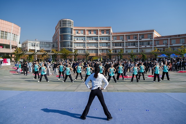 街舞協(xié)會、校啦啦操隊、校武術隊輪番上場,贏得全場師生陣陣掌聲。作為本次活動的亮點環(huán)節(jié),“悅動?青春”廣場舞環(huán)節(jié)將氛圍推向高潮。近千名師生以學院為單位列隊,在專業(yè)教練的帶領下,隨著明快的節(jié)奏舒展肢體、盡情舞動。啟明廣場上,躍動的身影和歡快的旋律交織成一片活力海洋,成為釋放學業(yè)壓力、激揚青春活力的生動載體!霸瓉韽V場舞能這么潮!每一次伸展都是對疲憊的告別,每一次跳躍都是對壓力的宣戰(zhàn)!”人文與外語學院學生孟弋琳激動地說。