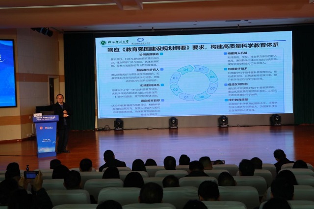 活動(dòng)緊密圍繞時(shí)代前沿,將人工智能技術(shù)與科學(xué)教育的深度融合作為核心議題。多位權(quán)威專家?guī)砹烁咚降膶n}講座。浙江師范大學(xué)副校長李盛從宏觀戰(zhàn)略層面,深入闡釋了《教育強(qiáng)國指引下科技教育與人工智能融合的探索》;浙江省教研室副主任喻伯軍則聚焦實(shí)踐,提出了《建設(shè)科學(xué)教育實(shí)驗(yàn)區(qū)、校的建議》,為一線工作提供了清晰的方法論指導(dǎo);科大訊飛AI技術(shù)應(yīng)用研究院副院長劉君分享了《人工智能技術(shù)最新進(jìn)展及在科學(xué)教育實(shí)踐案例》,生動(dòng)展現(xiàn)了AI技術(shù)重塑科學(xué)課堂的廣闊前景。