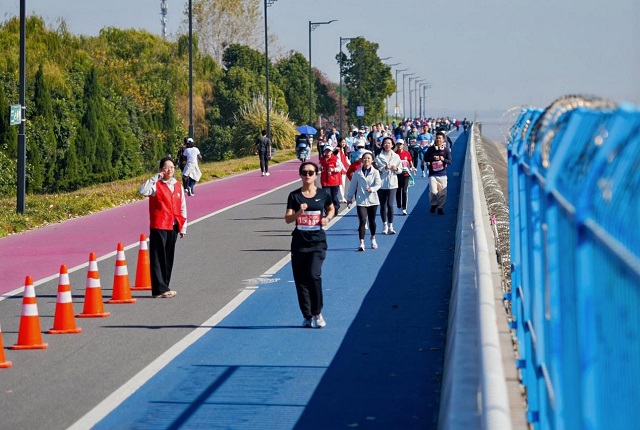 早上9點(diǎn)半,浙江省教育工會(huì)主席、浙江省鐘聲體協(xié)主席王玉慶宣布活動(dòng)開(kāi)始,隨著發(fā)令聲響起,各高校代表隊(duì)有序出發(fā),激情洋溢的健步活動(dòng)正式開(kāi)啟。陽(yáng)光下,金燦燦的銀杏葉隨風(fēng)搖曳,江面開(kāi)闊波光粼粼,隊(duì)伍中,有“健步達(dá)人”全力沖刺,有人三五結(jié)伴暢談,還有人不時(shí)駐足,用鏡頭定格江畔美景與運(yùn)動(dòng)瞬間。不同的節(jié)奏,同樣的熱情,讓這段路程充滿(mǎn)了快樂(lè)與溫暖。