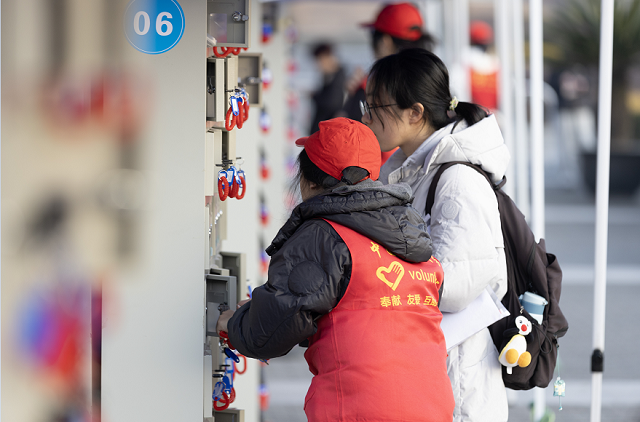 學(xué)校精心布設(shè)暖心服務(wù)點、志愿者咨詢臺及應(yīng)急綠色通道,全方位為考生保駕護航。考場外清晰醒目的指引標(biāo)識一目了然,志愿者與研究生會干部主動為考生提供咨詢引導(dǎo)服務(wù),并協(xié)助考生將手機等隨身物品統(tǒng)一存放至指定區(qū)域!皬乃⒛樳^安檢開始,就有志愿者微笑著對我說‘加油’,老師們也不斷給予我鼓勵,一路上都有工作人員耐心指引!敝袊嬃看髮W(xué)考生王雅玲說,這些小小的善意,給了她很大的鼓勵。