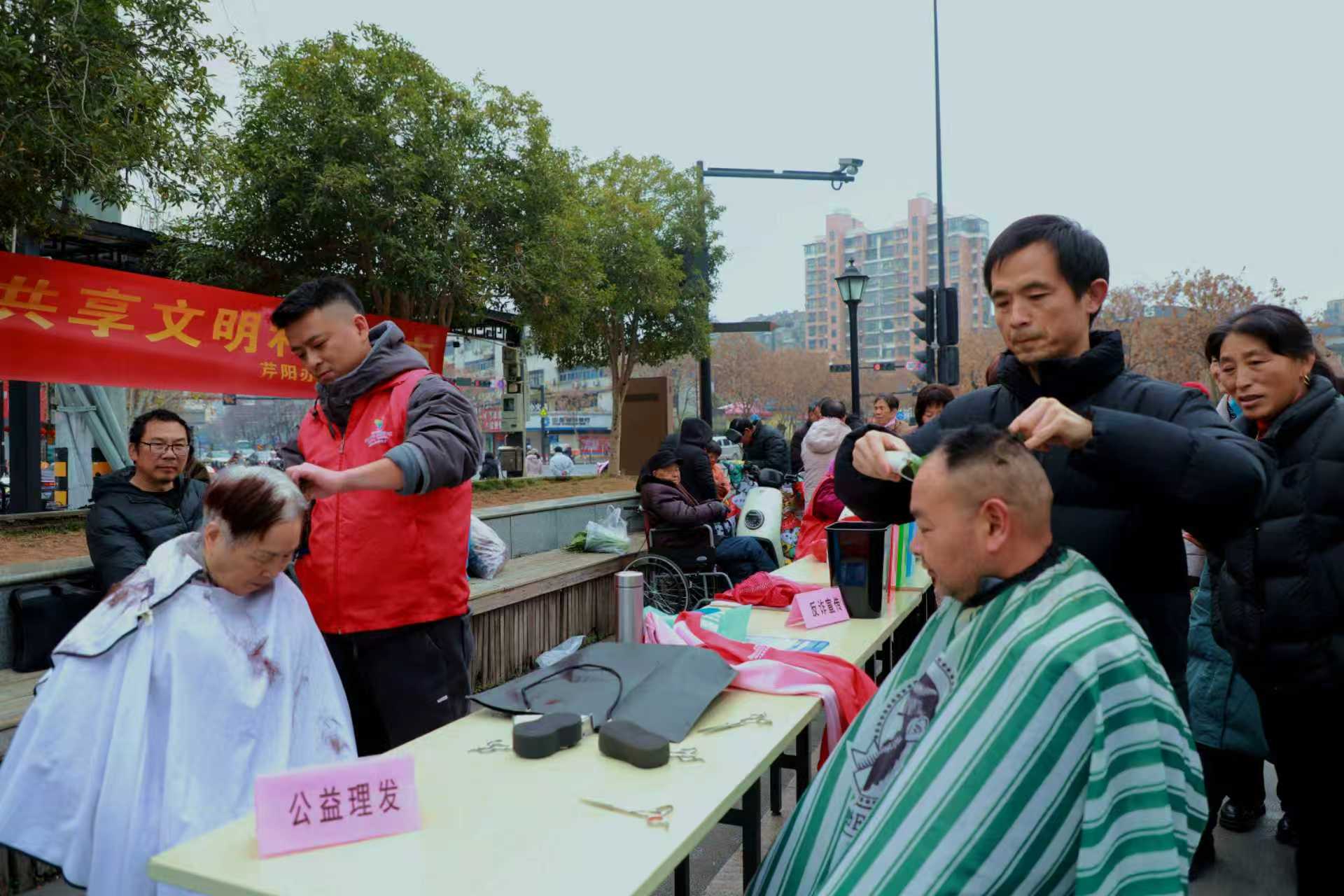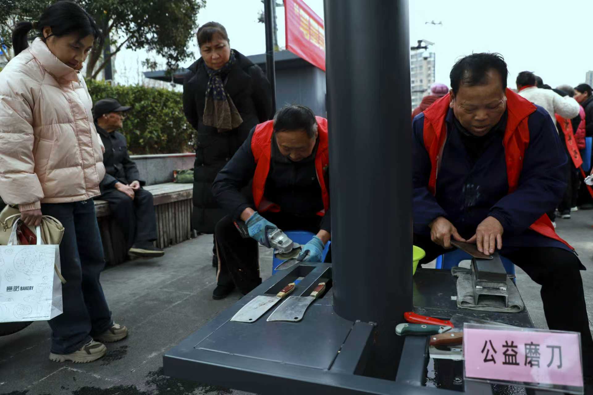 活動現(xiàn)場,書法志愿者揮毫潑墨,免費為居民書寫春聯(lián),濃濃墨香傳遞新春祝福。同時為居民公益理發(fā)、免費磨刀、衣物縫補(bǔ)、健康義診等便民服務(wù),志愿者們耐心細(xì)致服務(wù),讓居民在家門口感受到社區(qū)溫暖,贏得現(xiàn)場居民一致好評。