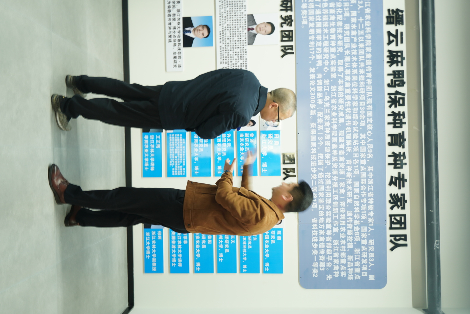 科協(xié)一行首先查看了駐院師生住宿環(huán)境等硬件設(shè)施,與駐院工作人員深入交流,詳細了解傳統(tǒng)麻鴨產(chǎn)業(yè)在品種更新、標準化管理、技術(shù)推廣等方面的實際瓶頸。座談會上,麻鴨科技小院負責人匯報了自2024年9月掛牌以來的建設(shè)進展。詳細介紹了小院以“產(chǎn)學(xué)研用”一體化為目標,圍繞種源保護、科技賦能、市場開拓三大核心戰(zhàn)略,推行“小院+高校+農(nóng)戶”聯(lián)動機制,聯(lián)動國家麻鴨產(chǎn)業(yè)技術(shù)體系專家,重點開展分子育種、縉云麻鴨群體遺傳多樣性分析、公鴨血緣關(guān)系等核心技術(shù)的研究與示范推廣等方面工作。