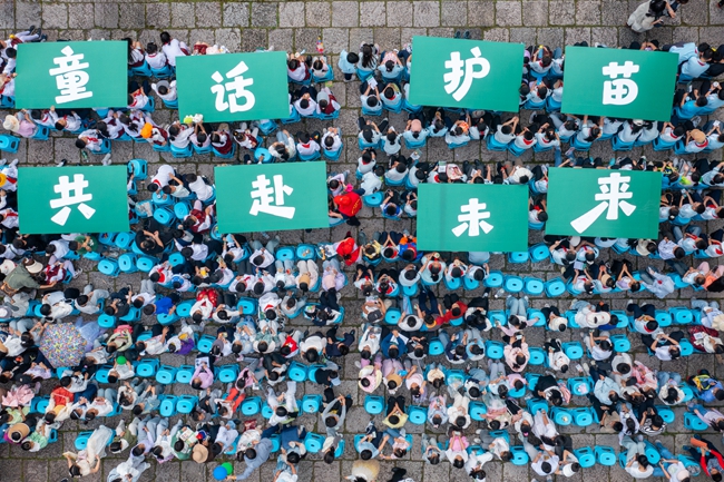 熱鬧的舞臺之外,是一片更廣闊的童話海洋——浙江師范大學(xué)非洲研究院非洲博物館館長約羅教授在“童話出!敝v座上與武義學(xué)子分享非洲的民俗故事;“南霞護苗”集市上,糖畫、草編等非遺體驗以及各個小跳蚤攤位都充滿了孩子們的歡笑聲;“護苗闖關(guān)”游藝的8個闖關(guān)站人頭攢動,新奇有趣的挑戰(zhàn)令孩子們流連忘返。