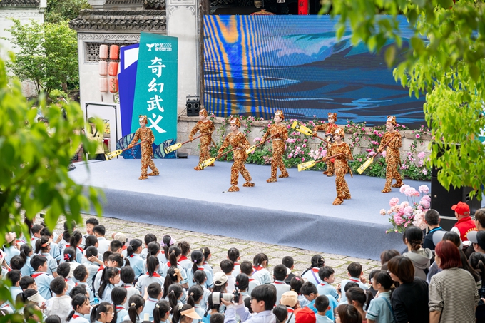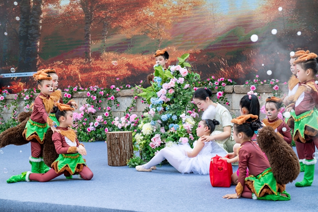 現(xiàn)場舉行了第八屆“溫泉杯”短篇童話大賽頒獎儀式和第十一屆“奇思妙想·童心飛揚”小學(xué)生童話創(chuàng)作大賽頒獎儀式。在“童話出!毙聲栀泝x式上,武義縣童話書屋向浙江師范大學(xué)外籍師生贈送新書《珍珠》。2025年第十屆“奇思妙想·童心飛揚”小學(xué)生童話創(chuàng)作大賽獲獎?wù)呱吓_宣讀了《“護苗·綠色閱讀”倡議書》。精彩的童話劇《虎王護苗》《豐收的田野》《貓尾兔喜喜》等,童趣滿滿又溫馨治愈,引得觀眾掌聲連連。